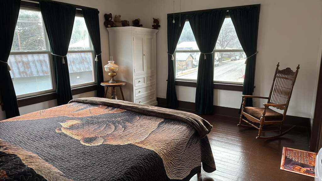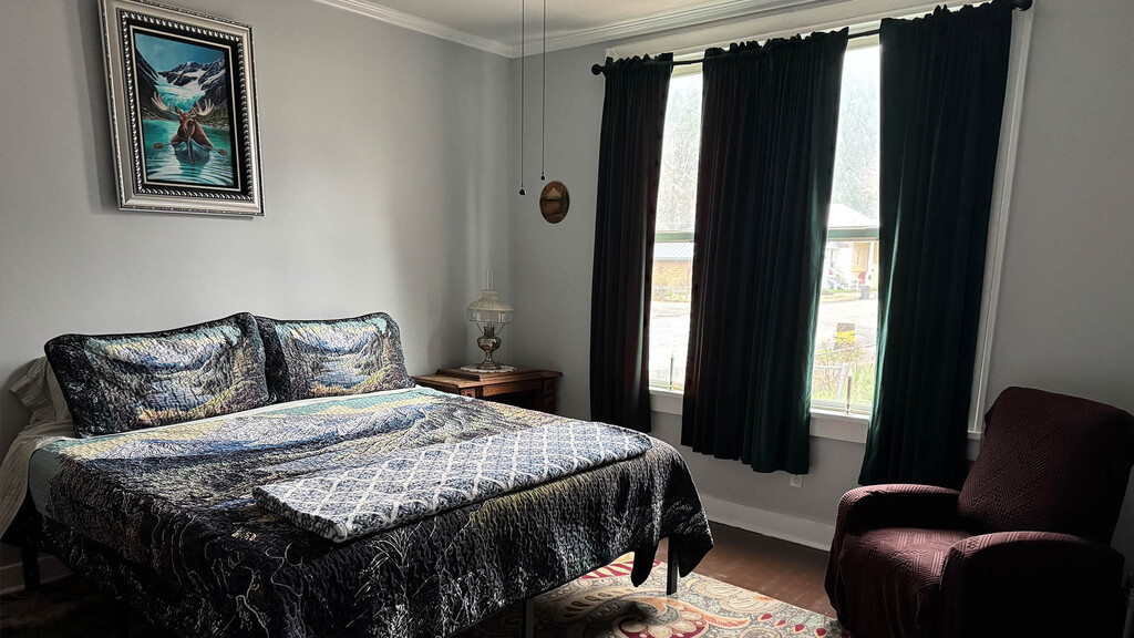 Come cuddle up with our brown furry friends of the Northwest in our Bear Room.  This corner layout room is bright with 4 large windows offering a view of Dunsmuir Ave.  Shower in your own private bath or soak your weary feet in the claw foot tub.